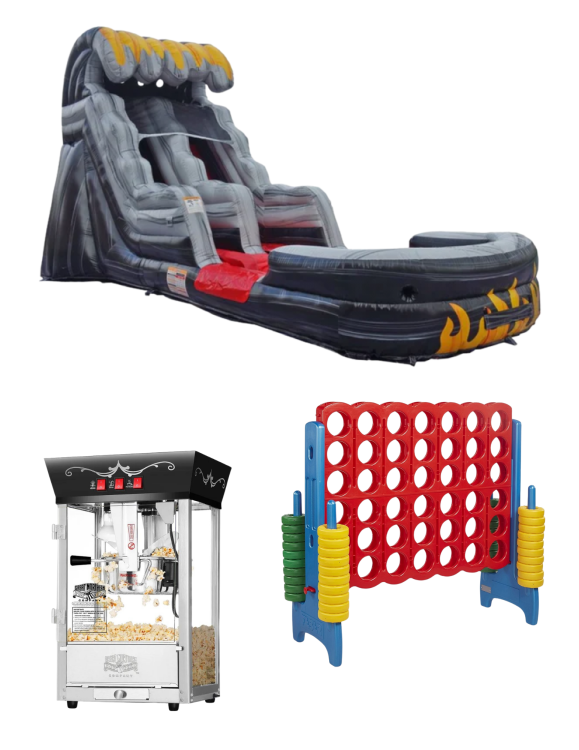 Turn up the excitement with the Flame Package — a striking party bundle built to dazzle and entertain. This package pairs a 15-foot flame feature that creates dramatic, eye-catching fire effects with a Giant Connect Four for friendly competition and a popcorn machine that fills the air with the warm, irresistible scent of fresh popcorn. Perfect for outdoor events, fairs, and celebrations, the Flame Package delivers visual spectacle, interactive fun, and tasty snacks in one easy rental. Simple to set up and sure to be a crowd-pleaser, it’s a memorable way to make any gathering feel larger than life.